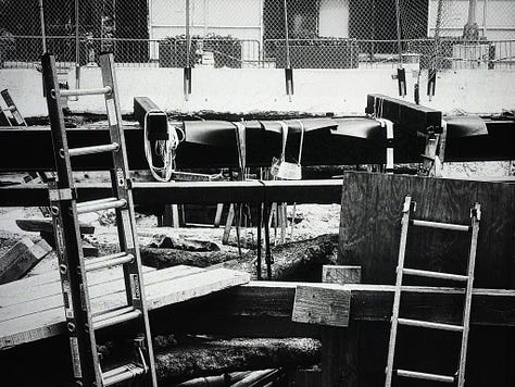 A man sleeping beneath scaffolding, the rhythm of his breath syncing with the city’s mechanical heartbeat.